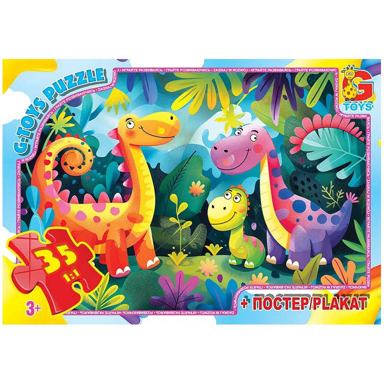 Торгова марка G-Toys, вироблено в Україні. Ліцензія. Комплектність: 35 пазлів, розмір полотна 210 мм х 300 мм + постер (плакат) з зображенням пазла. Пакування коробка : 19 см х 13 см х 3 см. Чудовий, яскравий пазл з щільного картону створений для дітей молодшого віку. Стимулює в дитині сенсорне сприйняття та інтелектуально-пізнавальний розвиток. Великі яскраві деталі, спеціально призначені для маленьких дитячих ручок, легко з 'єднуються між собою і сприяють розвитку дрібної моторики рук.