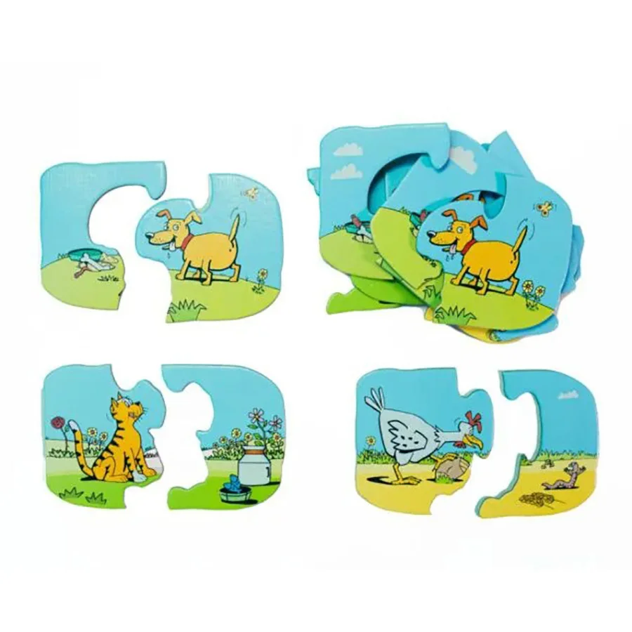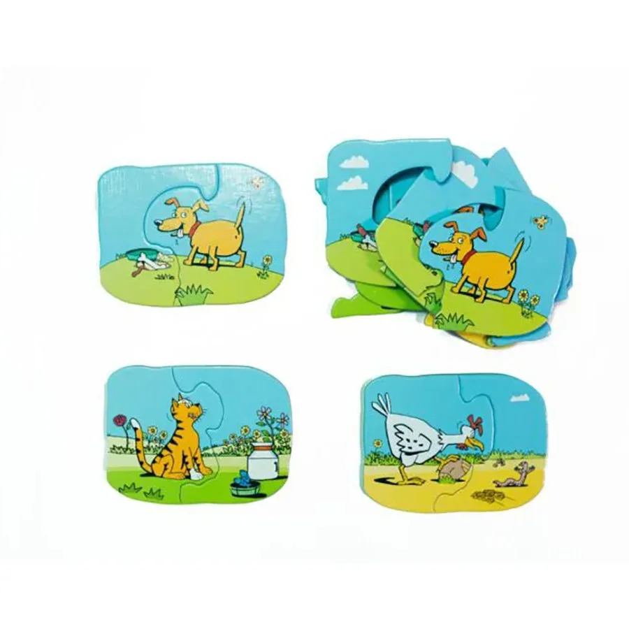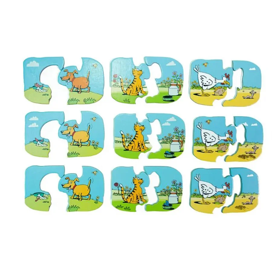 Нестандартні пазли для малюків з трьома різними героями малюнків — котиком, куркою та песиком — гарний подарунок для вашої дитини від бюро Taka Maka.