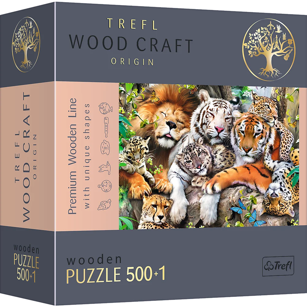 Пазли фігурні з дерева 500 + 1 елм."Дикі коти в джунглях"