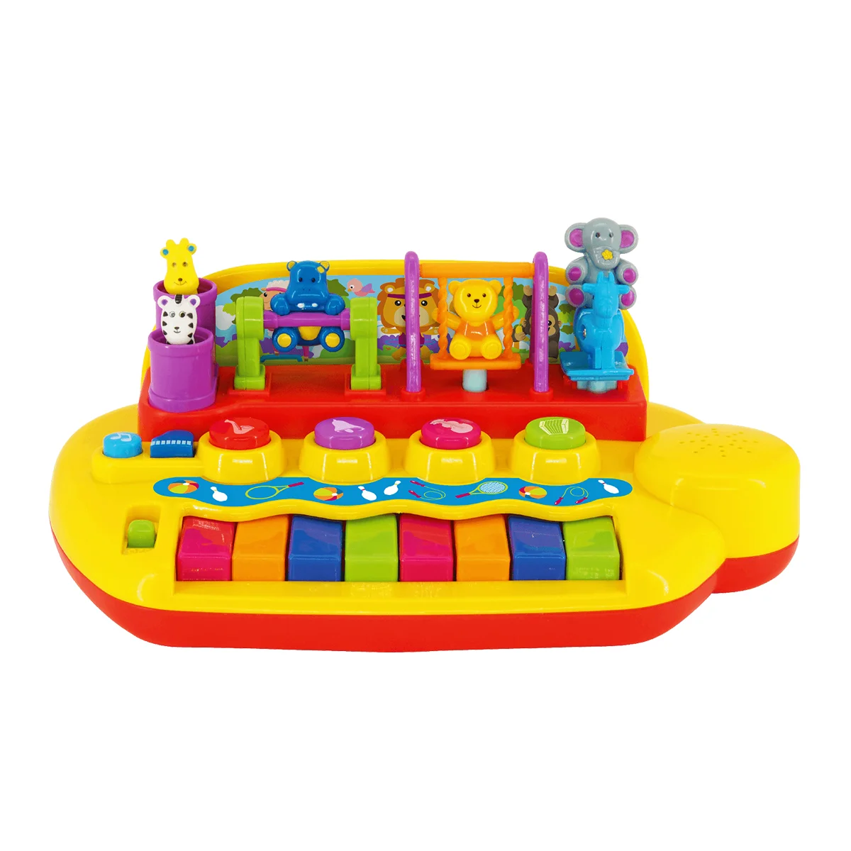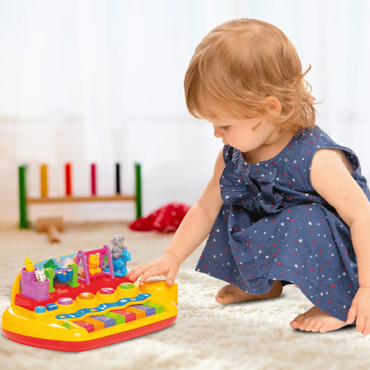 На ігровій панелі розміщені фігурки тварин, які весело рухаються, коли малюк грає на піаніно або слухає пісеньки чи мелодії.