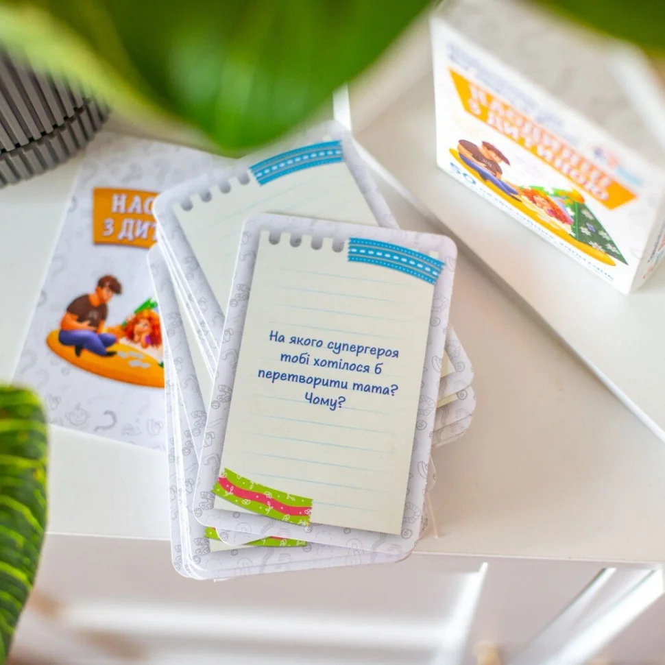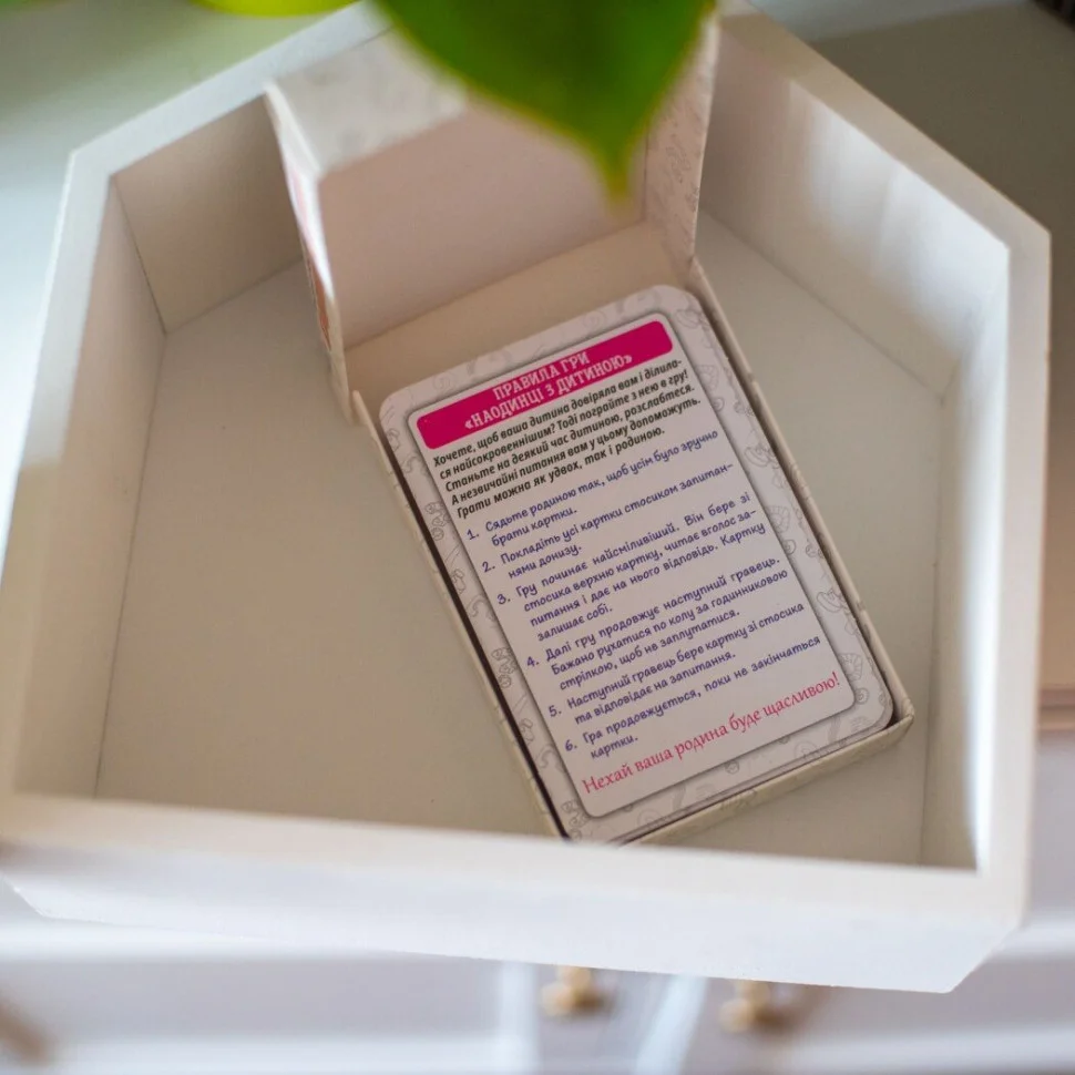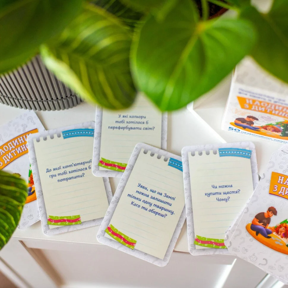 Ця захоплююча гра підходить як для спілкування з дітьми наодинці, так і для веселих родинних вечірок. Незвичайні питання допоможуть вам знайти спільну мову та поринути у світ відкриттів.