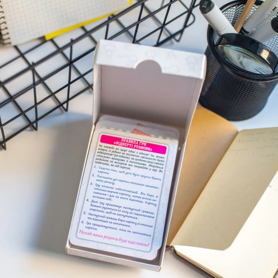 Чи завжди ви щирі одне з одним? Гра підкаже, як зробити ваші сімейні стосунки кращими й теплішими. Зберіться разом за вечерею та насолодіться захоплюючими бесідами, які допоможуть зламати бар’єри і розкрити серця.