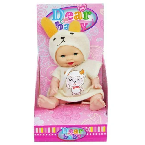 Маленький милий пупсик з смішний костюм у вигляді звірятка. Має звукові ефекти - при натисканні на кнопку говорить "мама", сміється і плаче. Рухливі купки, ноги та голова. Виконано з якісних та міцних матеріалів, буде чудовим подарунком дитині від 3-х років.
