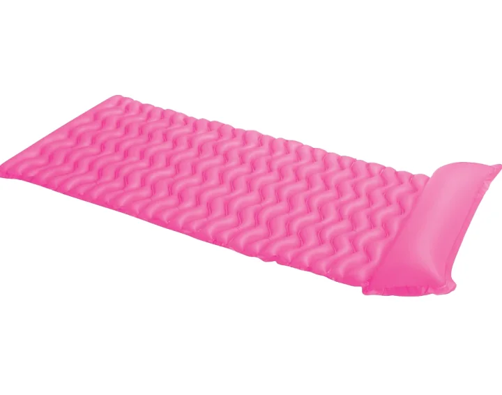Надувний пляжний матрац моделі 58807 порадує вас своїми яскравими і сонячними кольорами, випускається в 3 видах: червоному, зеленому та жовтому. Він має м'який підголівник і оригінальну поверхню, зроблену у вигляді хвильок, яка дуже комфортно відчувається вашим тілом під час відпочинку. Його легко можна згорнути в невеликий рулончик, помістивши в пляжну сумку, не здуваючи - це зручно. Складається з 2 надувних відсіків: підголівника та основної частини, з подвійними клапанами, що захищають від несподіваного спуску повітря. Додатковий комфорт вашому відпочинку надають збільшені розміри матраца, на якому можна просторо розміститися, як на воді, так і на пляжі.