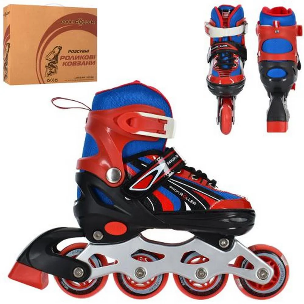 Розсувні дитячі роликові ковзани для початківців ролерів. Катання на роликових ковзанах допоможе розвинути у дитини координацію рухів і почуття рівноваги. Зручний високий напівм'який черевик добре сидить на нозі і не дасть нозі вискочити під час катання, а також захищає ногу від травм. Вентильований лайнер дозволяє нозі дихати. Корпус виготовлений з високоякісного полімеру і оснащений міцною алюмінієвою рамою і поліуретановими колесами. Система регулювання на 4 повних розміру дозволить вашій дитині кататися кілька сезонів, тим самим економити ваші гроші.