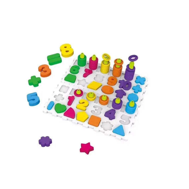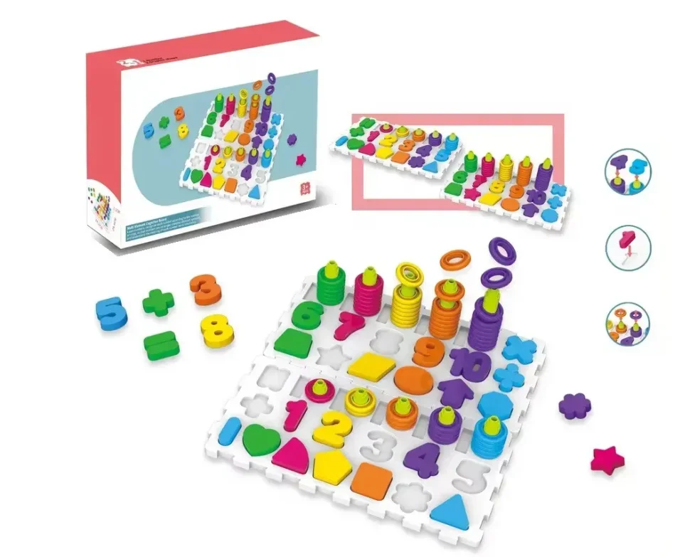 Як допомогти малюкові легко і швидко вивчити букви і цифри? Звичайно ж, у грі. Проста, на перший погляд, рамка Розвиваюча гра "Логіка-вкладиш 4 в 1" . чудовий посібник для вивчення та розвитку. У комплекті 2 дошки, які можна скріплювати між собою в довільному порядку, і понад 100 елементів (вкладки та кільця). З такою грою дитина легко та просто вивчить цифри від 0 до 10, геометричні фігури, літери англійського алфавіту, навчитися складати двозначні числа, складати математичні приклади та розв'язувати їх. Стовпчики з різнокольоровими кільцями стануть чудовою альтернативою знайомим усім рахівницям, а різноманітні фігурки можна використовувати як шаблони під час малювання. Запропонуйте малюкові розкласти всі елементи по своїх місцях, називаючи їх при цьому або озвучуючи колір елементів. Використовуйте деталі окремо в інших розвивальних іграх або комбінуйте з аналогічними наборами.
