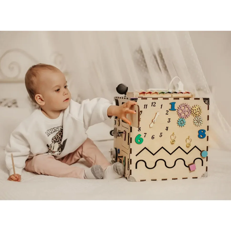 Одна іграшка може швидко набриднути, а бизиборд - це в середньому 14 іграшок в одній.
