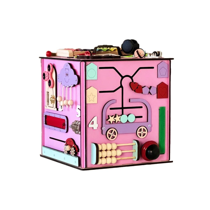 Бізікуб - це безліч іграшок в одній, спеціально створений для діток від 9 місяців. Завдяки своїй унікальній конструкції, бізікуб допомагає розвивати моторику, логіку, уяву та творчість Вашого малюка.