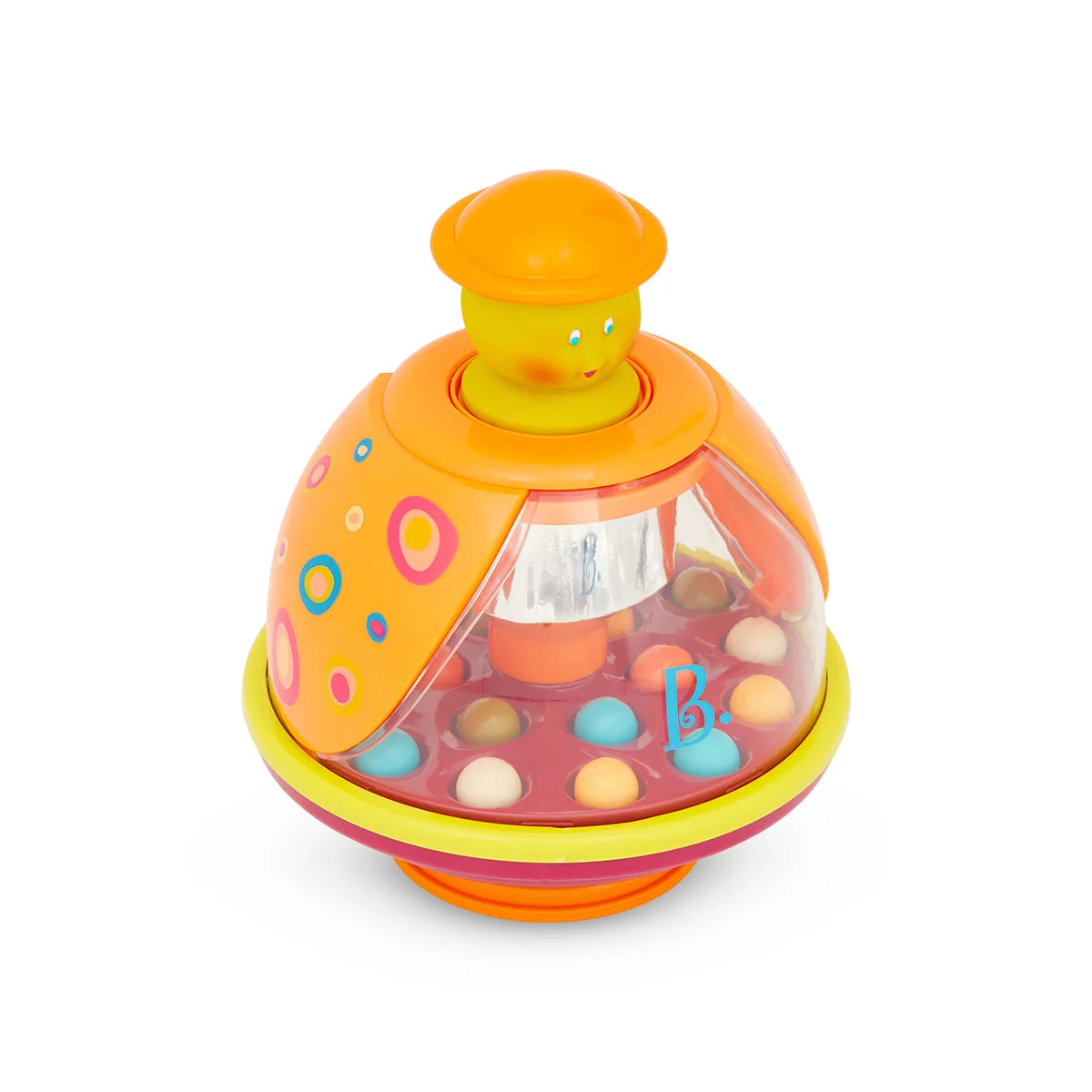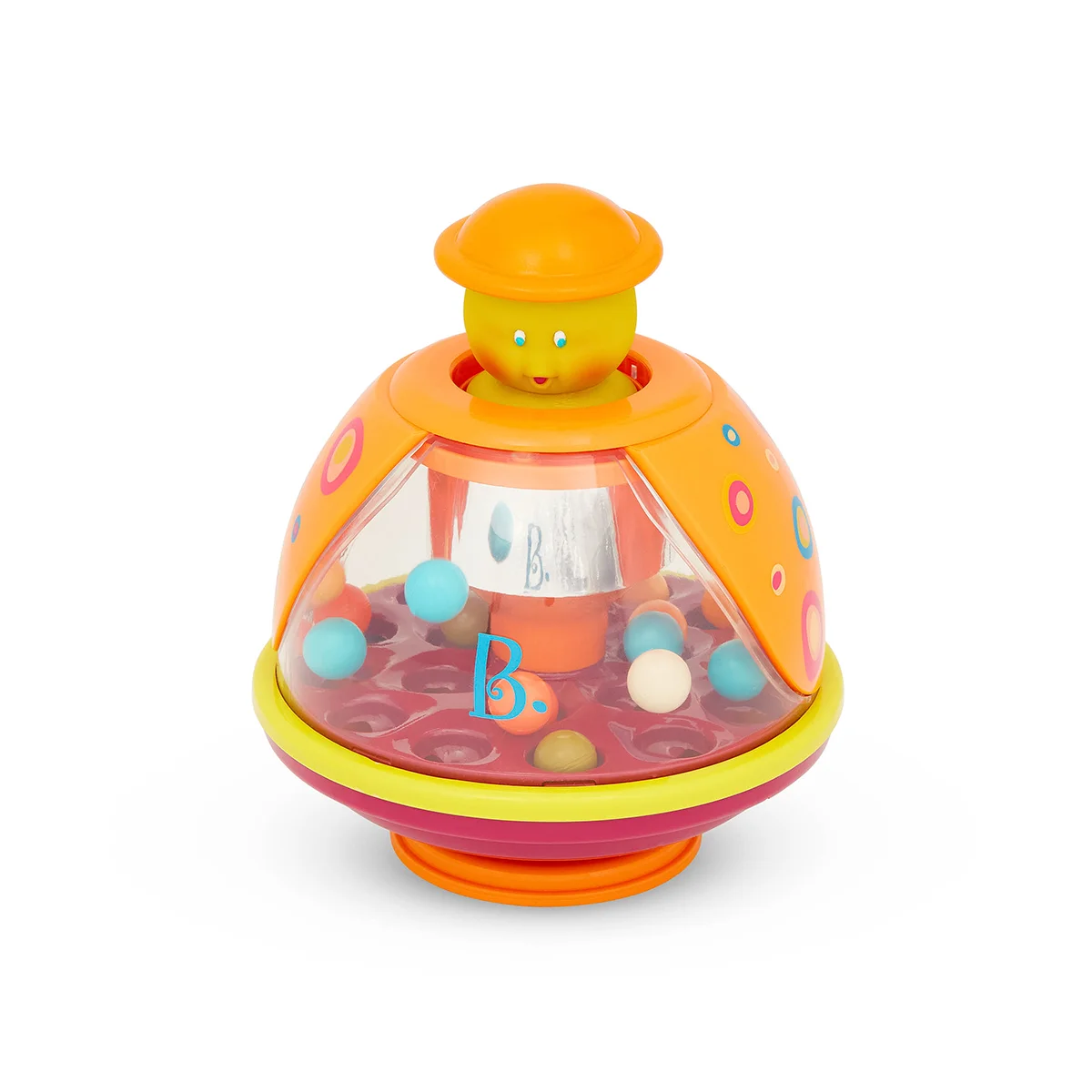 - Іграшка нагадує дзигу, але для того, щоб кульки прийшли в рух, не потрібно нічого заводити, досить тільки натиснути на капелюшок.