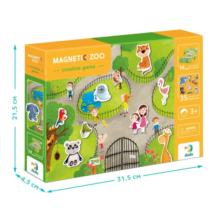 Сьогодні малят запрошують у зоопарк! І не звичайний, а магнітний. У розвиваючій грі від бренду Dodo “Магнітний зоопарк” — магнітна планшетка, підставка під неї та 35 магнітів з тваринками. Діти можуть розміщувати тварин на картинці, вивчати їх назви та вигадувати цікавезні історії про події у зоопарку. Що станеться, якщо лев та слоник потраплять у один вольєр? Будуть сваритися чи стануть друзями?