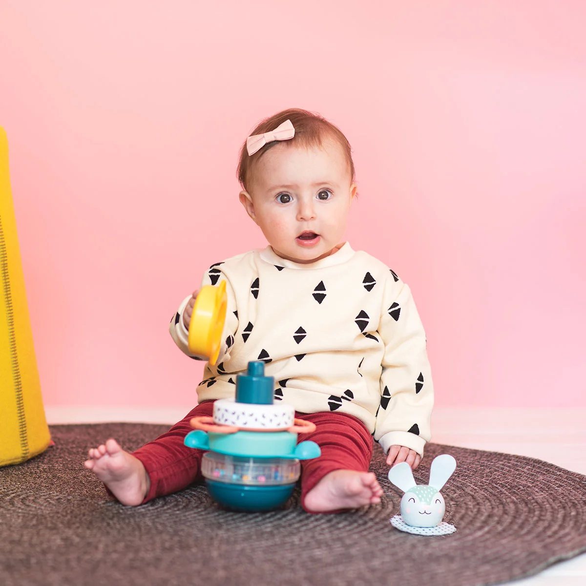 Малюк може не тільки весело грати з кроликом, але і розвивати логічне мислення, збираючи пірамідку.