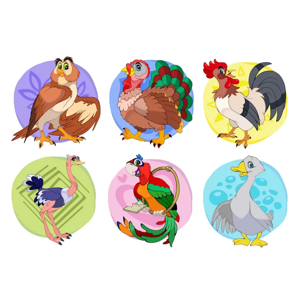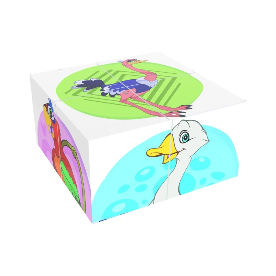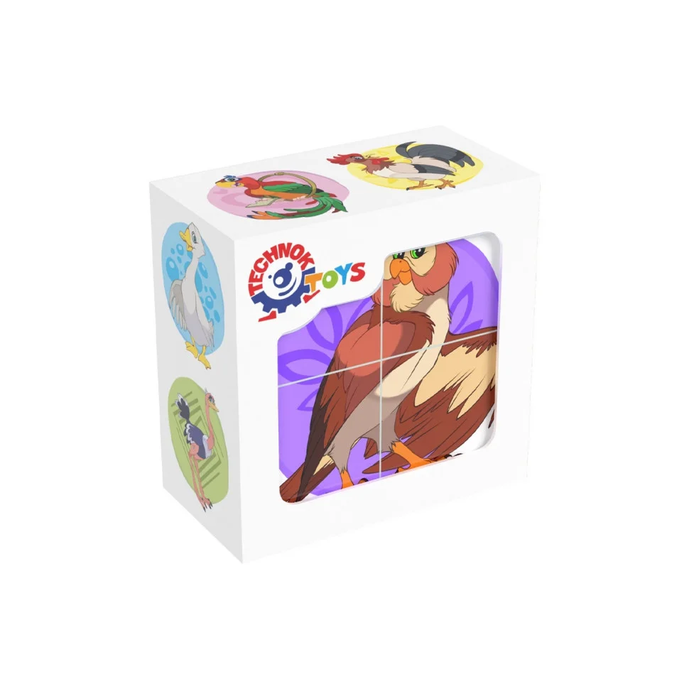 Набір з 4 кубиків, на кожній грані кубика фрагменти зображення птахів, які потрібно скласти в один малюнок. Розвиває логічне мислення, моторику пальців, фантазію.