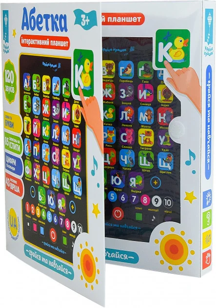 «Вітаю, друже! Ми будемо вивчати українську мову! Ти познайомишся з буквами і звуками українського алфавіту. Почуєш україномовні слова і вивчиш віршики »! 6 режимів навчання в невимушеній атмосфері гри: