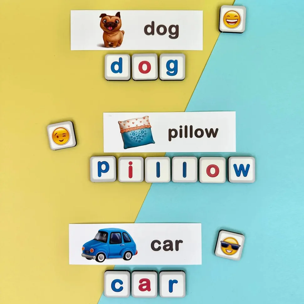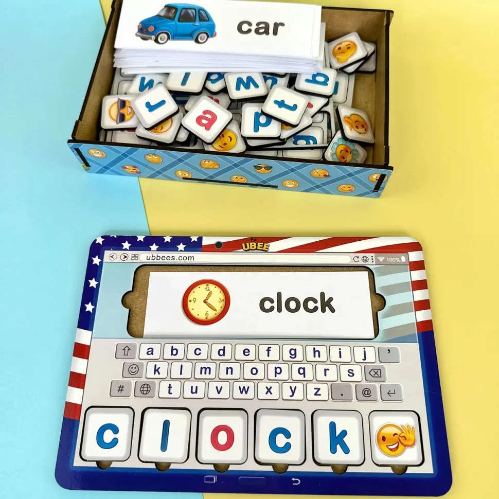 Якщо дитина робить перші кроки до вивчення англійської -ця гра створена саме для неї. Завдання просте й захопливе: вставляти потрібні літери в планшет, повторювати за карткою, читати, впізнавати слово й радіти результату.