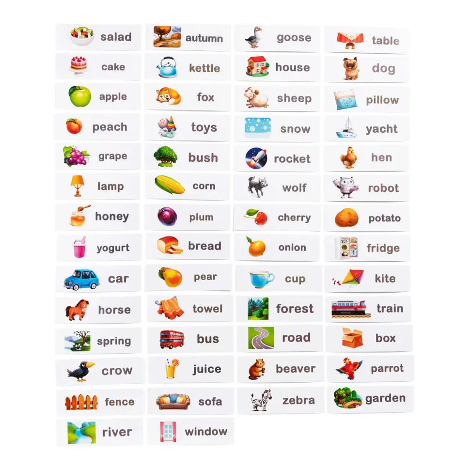 Дитині необхідно вибрати картку та скласти з літер намальоване на ній слово. Збираємо слова, вчимо літери та склади, рахуємо та сортуємо літери.