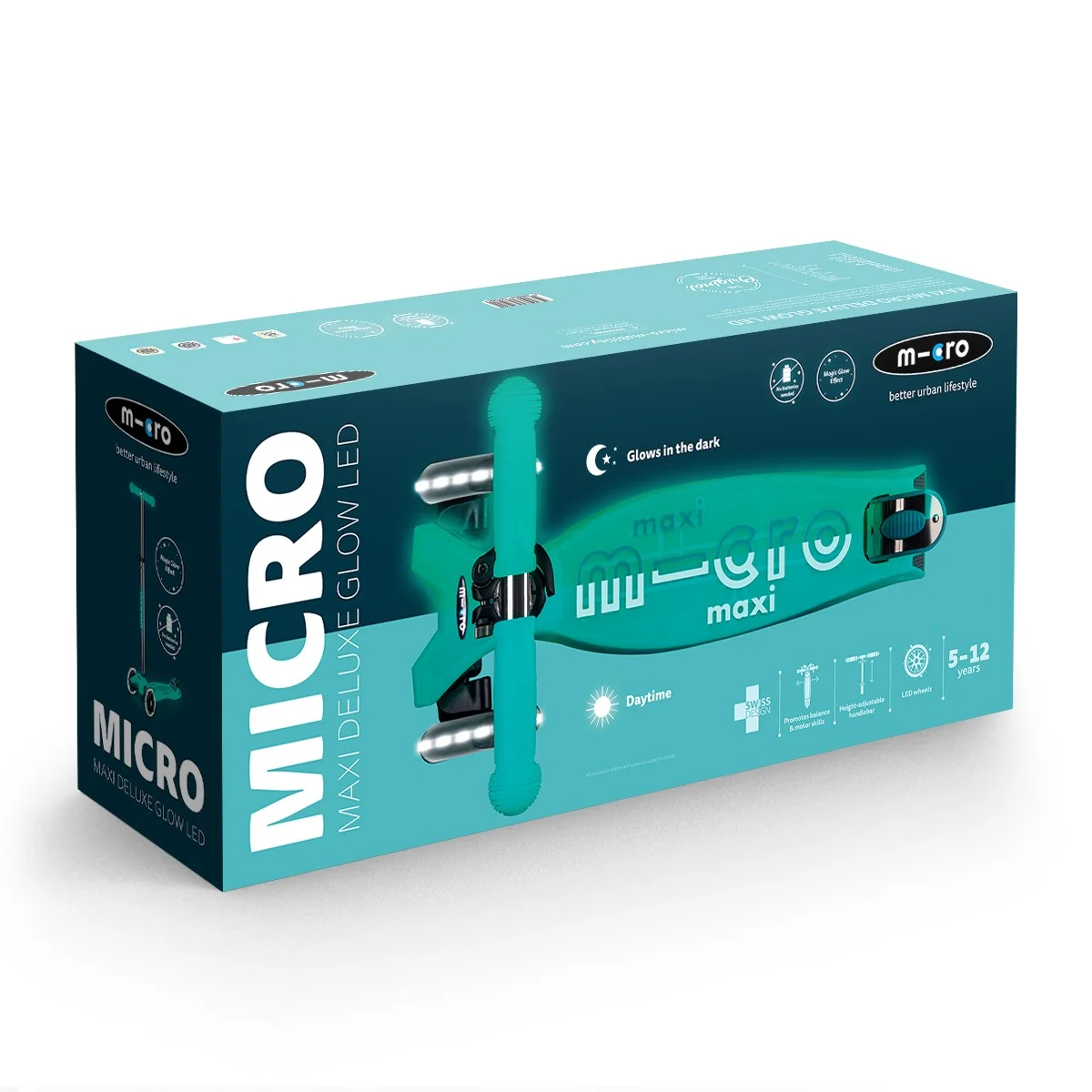 Самокат MICRO серії "Maxi Deluxe Glow LED" – ЖЕЛЕЙНИЙ ЗЕЛЕНИЙ (до 50 kg, 3-х колісний, світло)