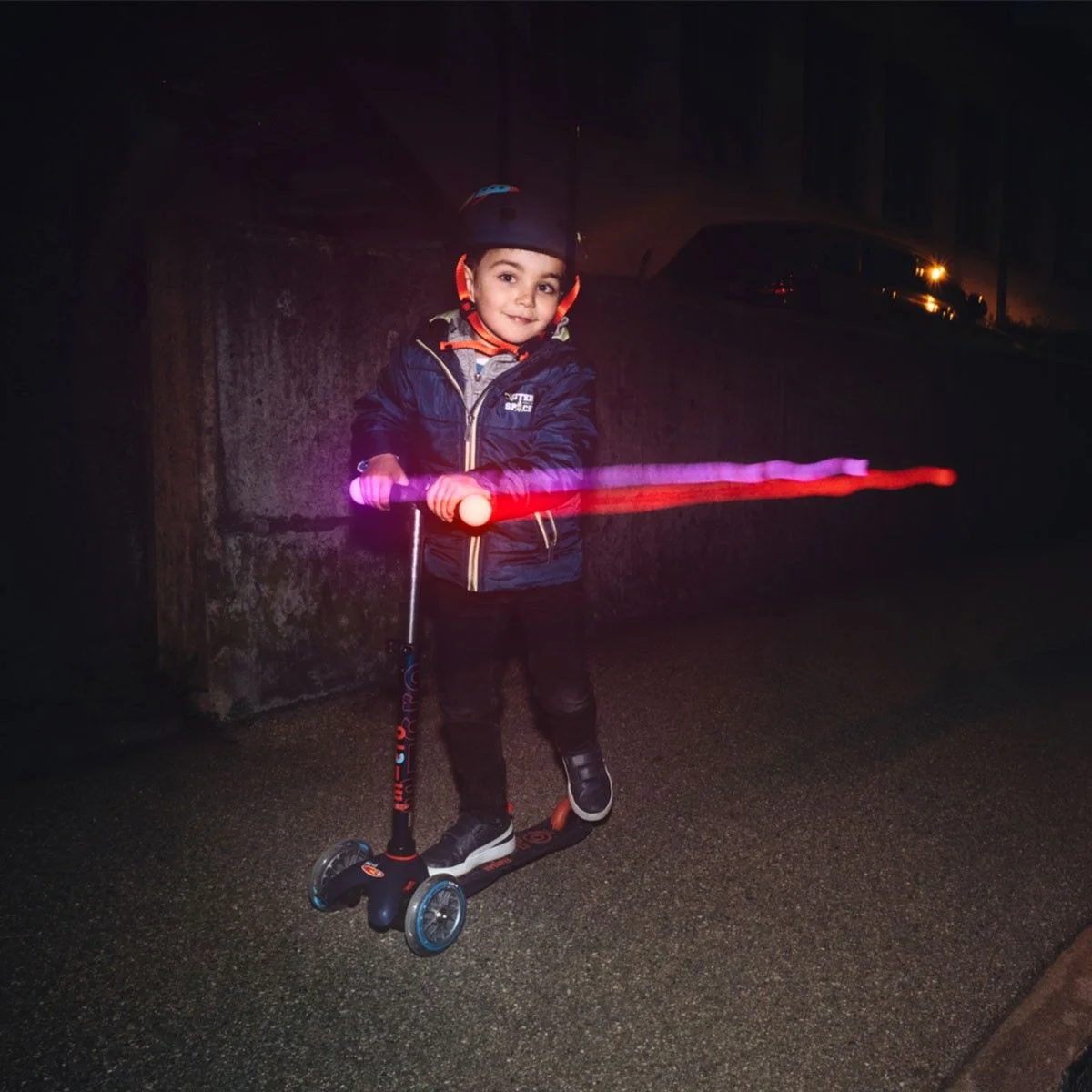 - Ручки самоката починають світитися, коли дитина торкається їх. Це забезпечує додаткову безпеку в темний час доби і, неодмінно, увагу всіх оточуючих!