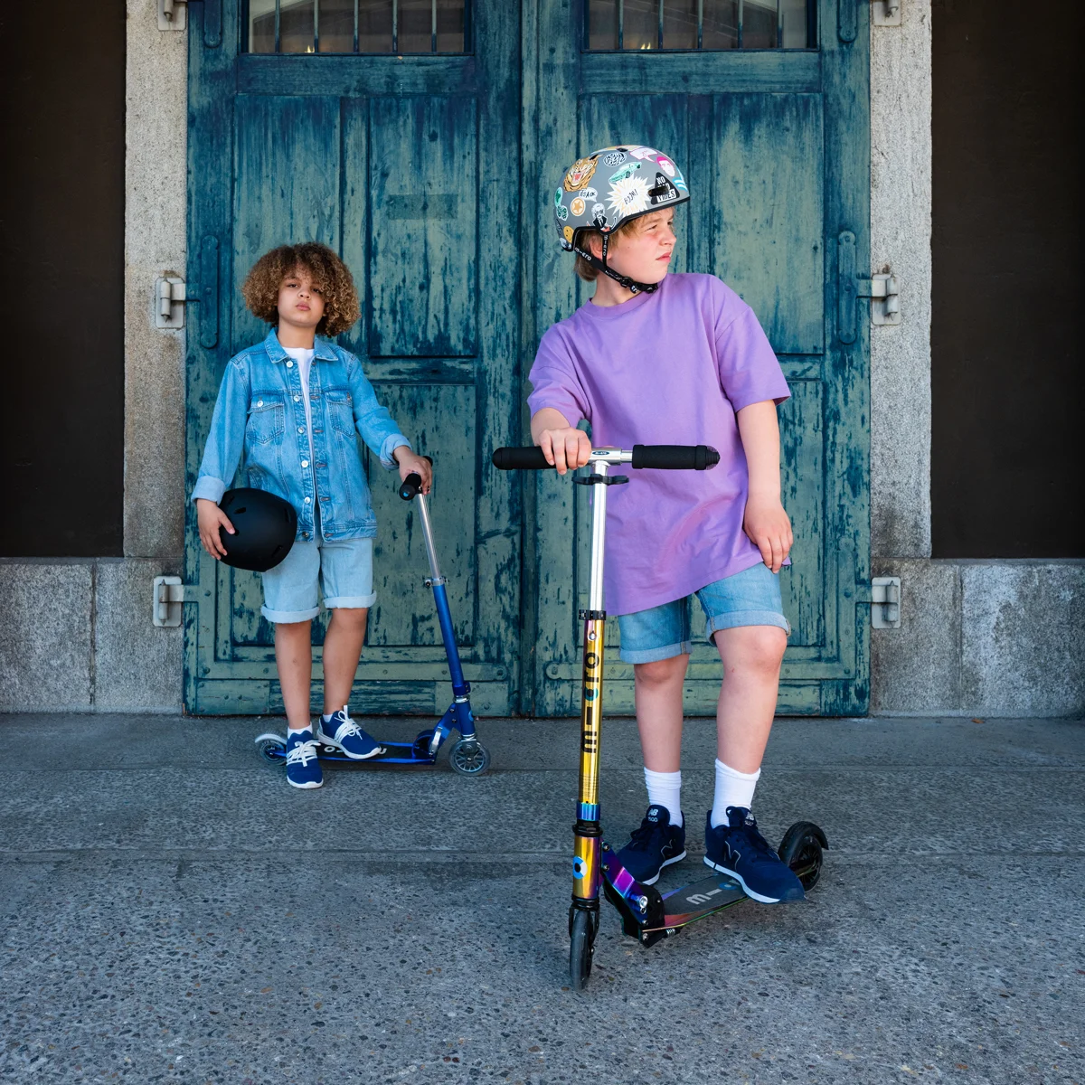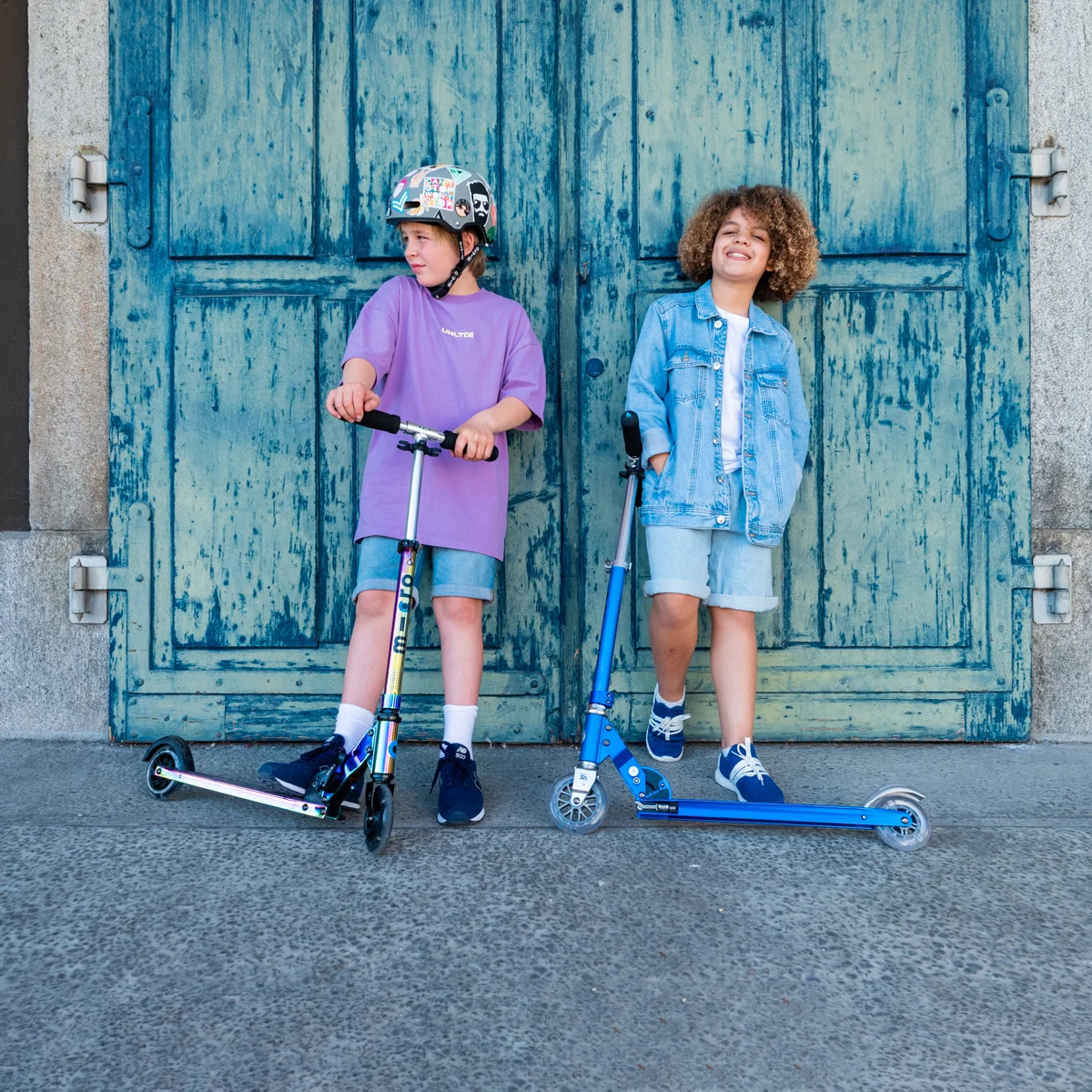 Самокат MICRO серії "Sprite LED" - НЕОХРОМ - досконалий та міцний двоколісний самокат. Він оснащений колесами, що світяться, та складною рамою.