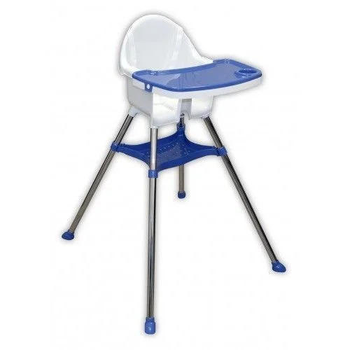 Стілець для годування обладнаний ременями безпеки та пластиковою перегородкою для дитячих ніжок, що гарантує безпеку малюка. Ніжки стільця металеві та прогумовані, решта – пластик. Стільниця знімна, з отвором під склянку. Розмір у зібраному вигляді – 97 х 67 х 68 см. Для дітей від 6 місяців до 3-х років. Запакований у дві коробки.