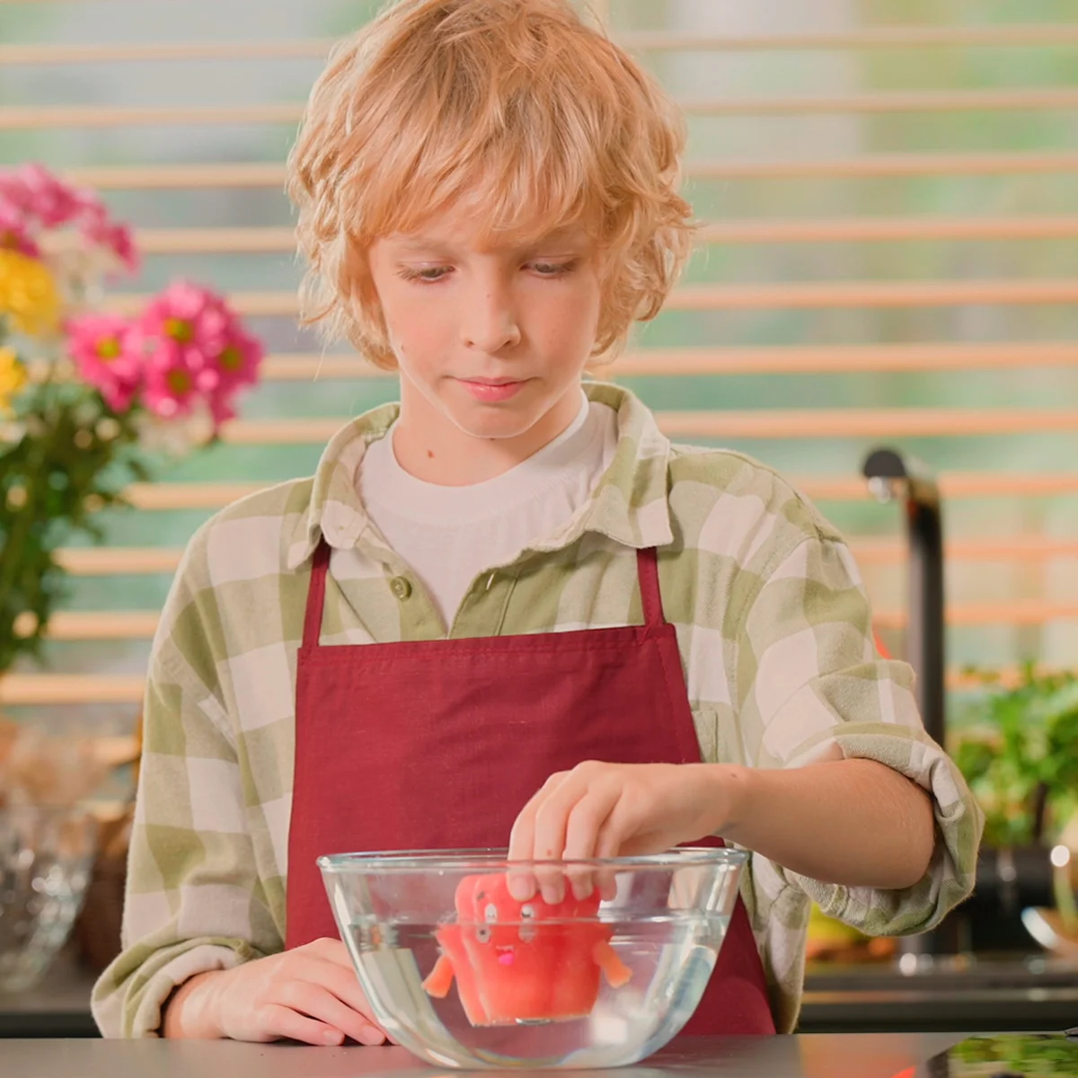 - Деякі іграшки здатні змінювати колір у воді, а деякі - змінюють колір на сонці! Зберіть їх усіх, щоб дізнатися, хто що вміє! Щоб герої змінили колір у воді, потрібно занурити іграшку у воду, температура якої має бути вищою за 30-32 градуси. А щоб овочі змінили колір на сонці, потрібно потримати їх під прямим сонячним промінням кілька хвилин.