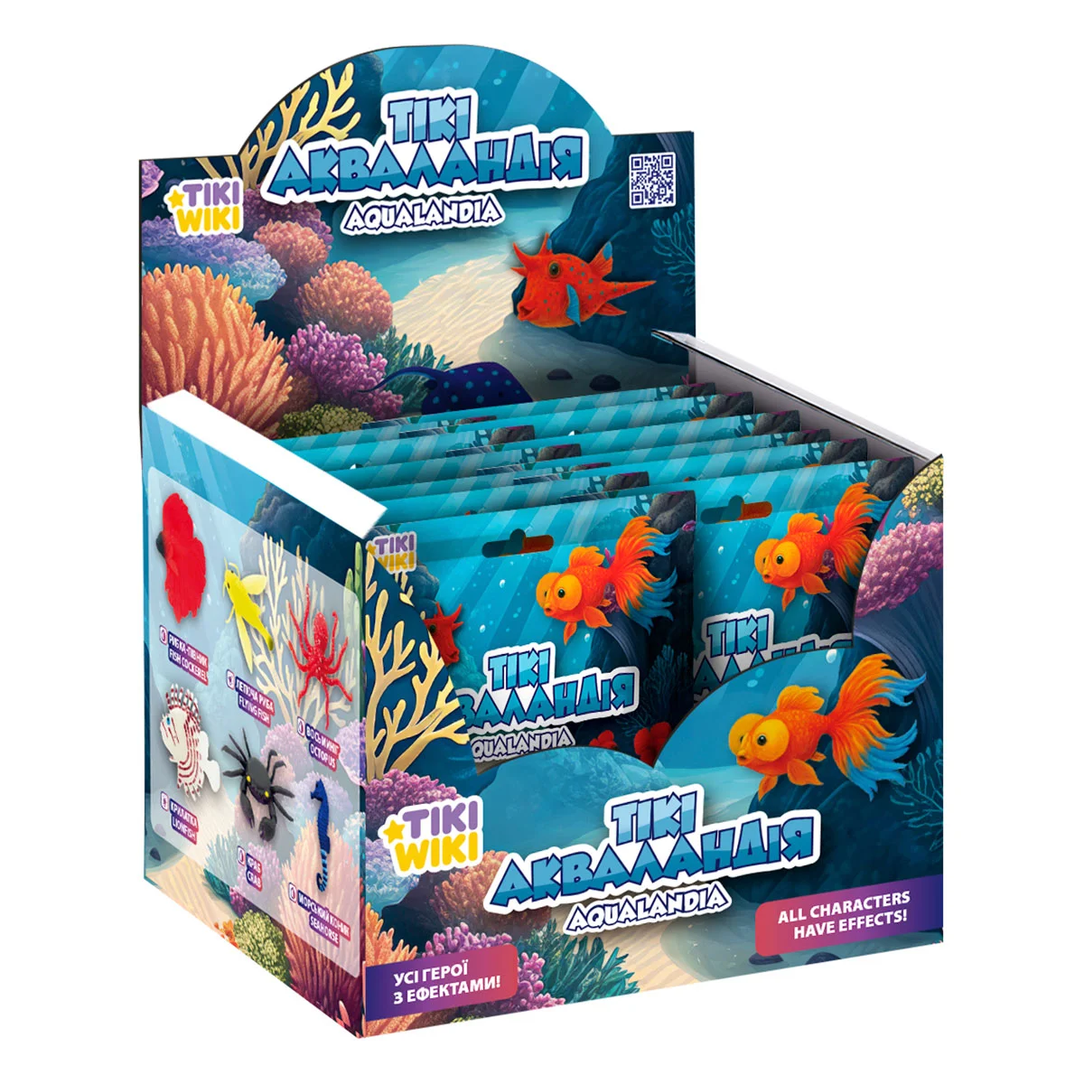 Тікі Акваландія — серія стретч-іграшок, що знайомить дітей з дивовижними мешканцями водного світу. Восьминіг, фуґу, морський коник, рибка-півник, скат-хвостокол, краб та інші — кожна іграшка натхненна реальними видами, які можна зустріти у водному середовищі.