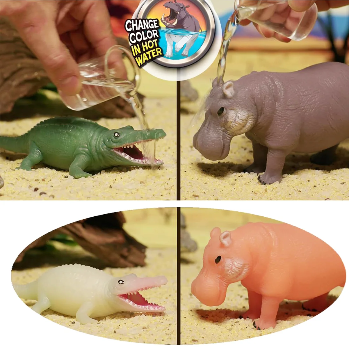 - Деякі іграшки здатні змінювати колір у воді, а один герой - світиться в темряві! Зберіть їх усі, щоб дізнатися, хто що вміє! Щоб герої змінювали колір у воді, потрібно занурити іграшку у воду, температура якої повинна бути вищою, ніж 30-32 градуси. А для того, щоб герой світився в темряві, його потрібно залишити на сонці від 1 до 5 хвилин, після чого іграшка тварини буде світитися.