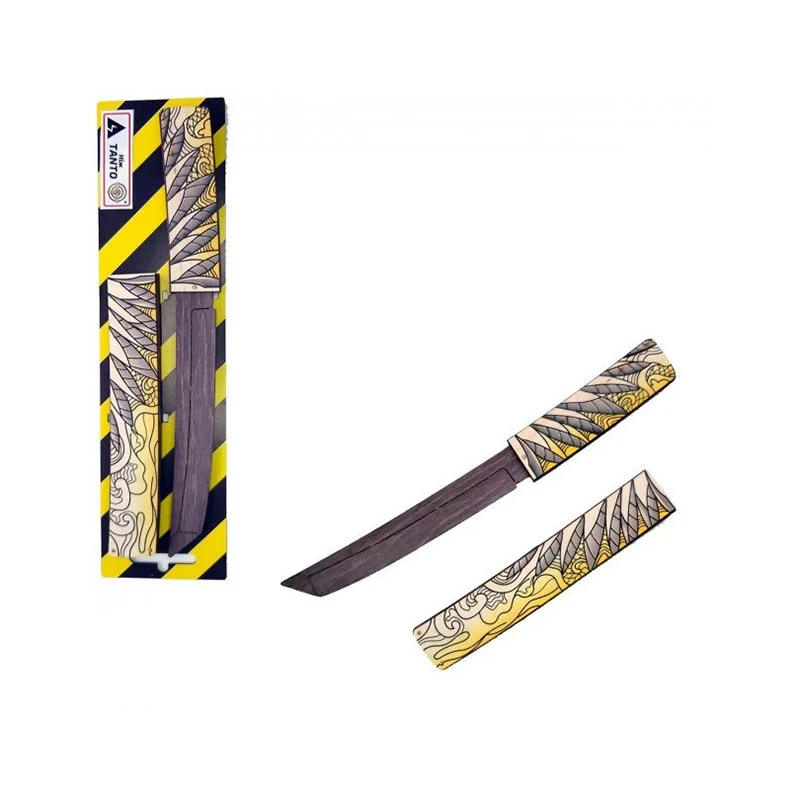 Ніж сувенірний "TANTO ДОДЖО". Матеріал: фанера. Довжина ножа - 28 см, ширина ручки - 3 див. Чудовий подарунок-сувенір. Ніж дерев'яний, якісний і міцний. Не заточений, гострі частини закруглені і зашліфовані, повністю безпечний. Покритий красивими японськими візерунками. Для дітей від 6 років.