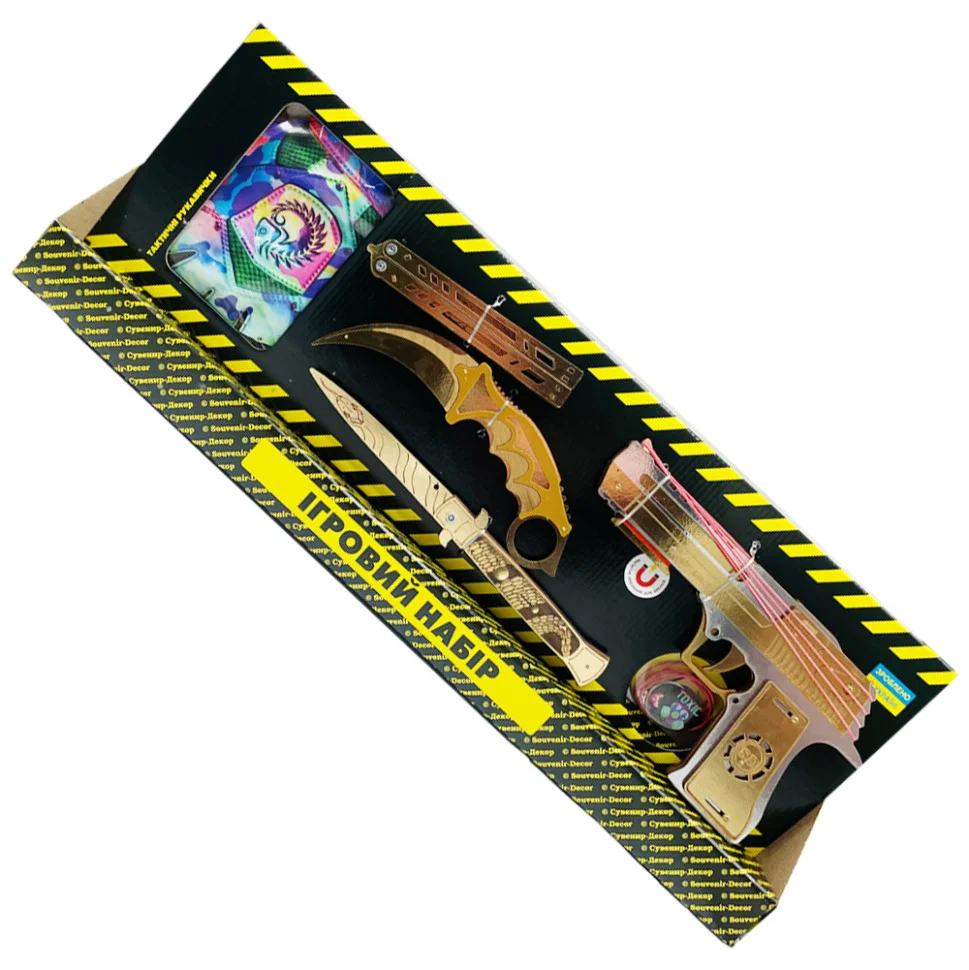 Дитячий ігровий набір "BIG BOX" - ідеальне рішення для любителів активних ігор та безпечних баталій! Особливо набір сподобається фанатам ігор CS:GO та Counter-Strike 2. У комплект входять: дерев'яний резинкостріл з гумками, тренувальні сувенірні ножі, тактичні рукавички та стильний брелок. *Забарвлення може відрізнятися від вказаного на фото.