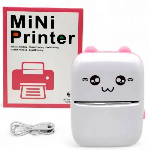 Термопринтер "Котик" mini printer - компактний та милий гаджет для швидкого друку нотаток, стікерів, списків та фото. Підключається через Bluetooth, також є USB-кабель у комплекті. Друкує на термопапері (1 рулон у комплекті), не потребує чорнила. Ідеально підходить для навчання, роботи чи творчості.