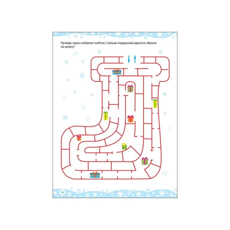 Для святкових зимових вечорів презентуємо збірник «Ігрові лабіринти». Казкові герої, яскраві картинки, лабіринти на будь-який смак для посидюк та непосидьків. Кожен вечір буде зайнятий, адже у збірнику 64 сторінки завдань для кмітливих: лабіринти-намисто, сюжетні лабіринти, лабіринти на знаходження виходу, плутанки, кольорові судоку, навіть картинки-розфарбовки. І як бонус — відрізний календар очікування улюбленого свята: щодень діти розфарбовуватимуть дату у колір за бажанням. Нудно точно не буде!