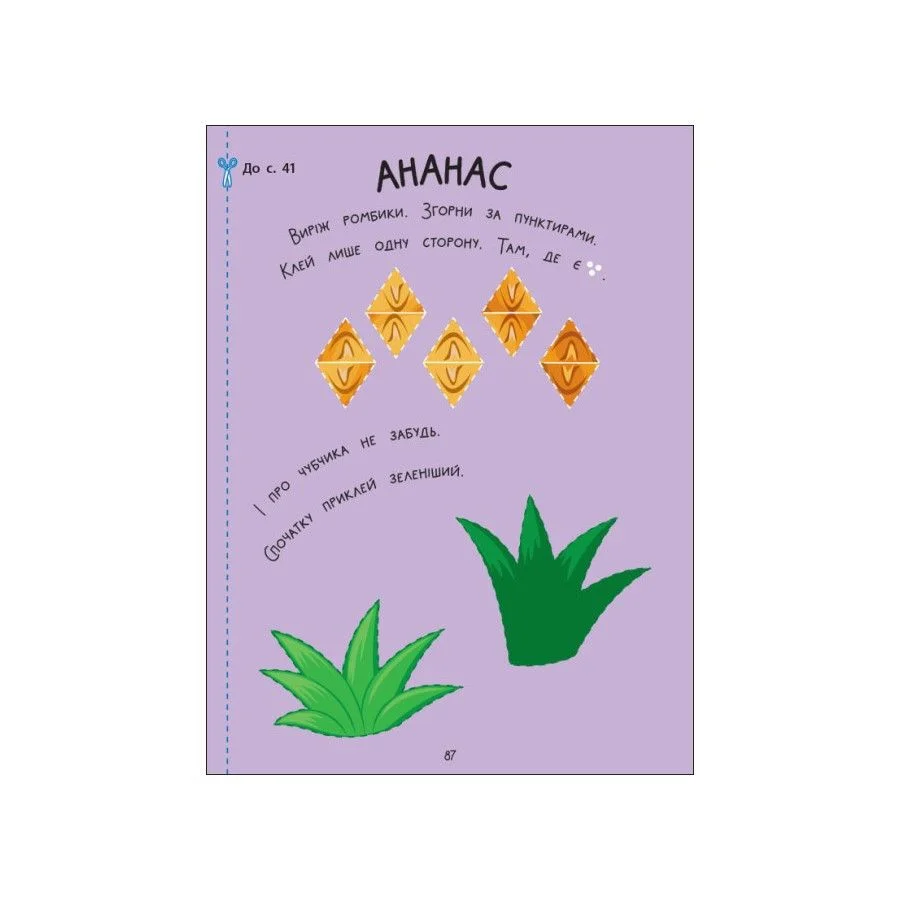 За зрозумілими й покроковими підказками дитина створює аплікації у 2D форматі та формує навички роботи з ножицями й клеєм, розвиває просторове й креативне мислення. Розмальовуючи патерни, вчитися дотримуватися певного ритму.