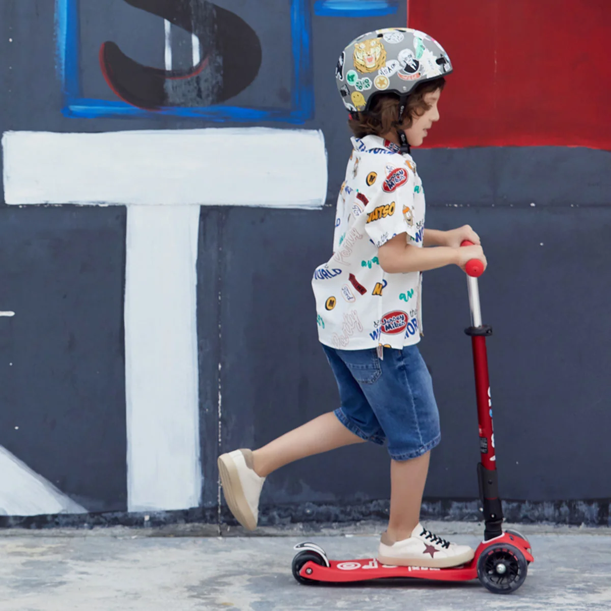 - Яскравий колір та принт шолома обов'язково сподобається маленьким гонщикам.