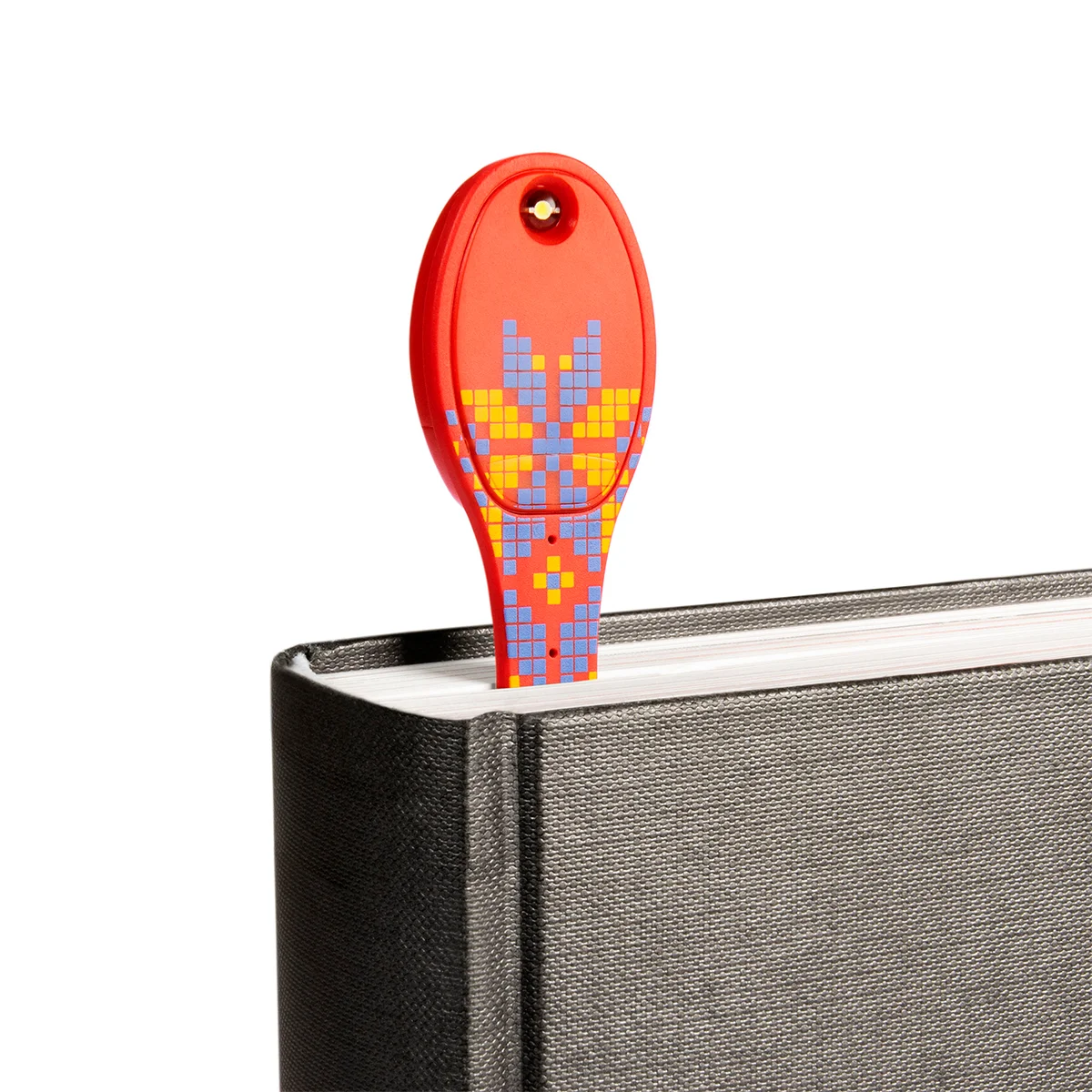 - 8 люменів теплого світла завдяки яскравому світлодіоду, що робить її найбільш безпечною, тонкою та універсальною серед закладок-ліхтарів та світовим бестселером;