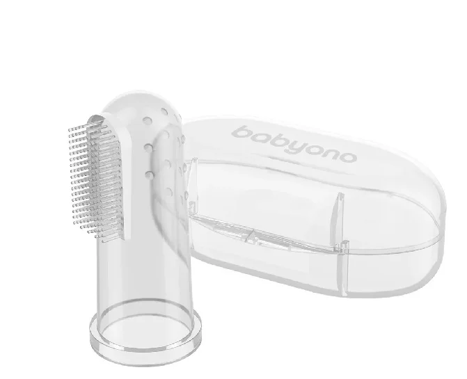 Про гігієну порожнини рота дитини слід дбати з перших днів життя. Чисті ясна, а згодом і перші молочні зубки - одна з передумов здорових зубів. Найкращим рішенням і помічником є зубна щітка для перших зубів - спеціальний ковпачок для батьківського пальця. Виріб має м'які виступи з одного боку та щіточку з м'якого матеріалу з іншого. Вона м'яко масажує ясна, приносячи полегшення, особливо під час прорізування зубів. До зубної щітки додається футляр, в якому виріб можна безпечно та гігієнічно зберігати. Він виготовлений з безпечного пластику, що не містить бісфенолу А.